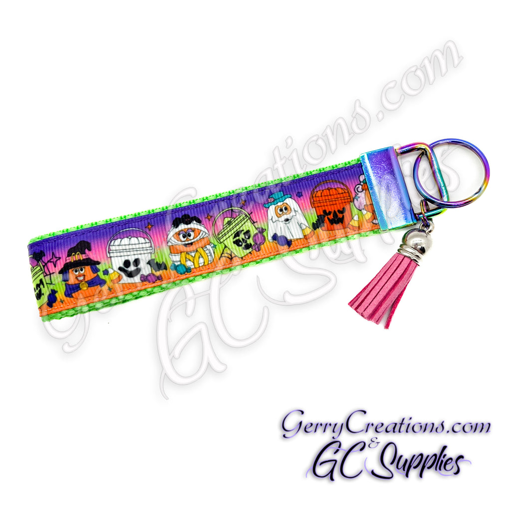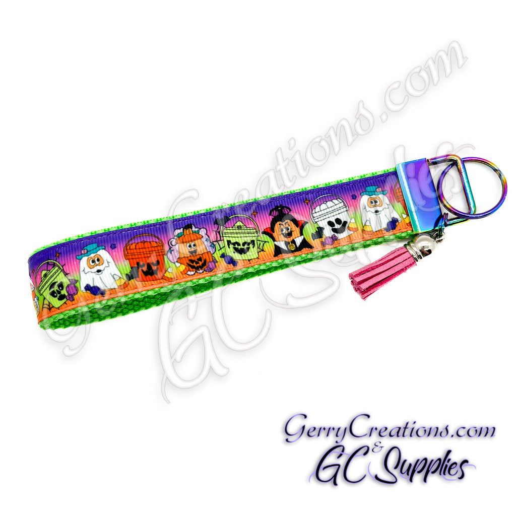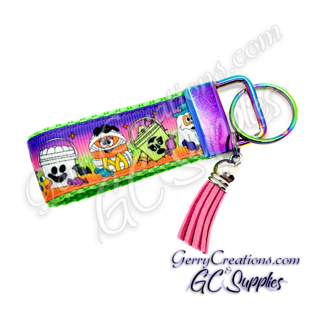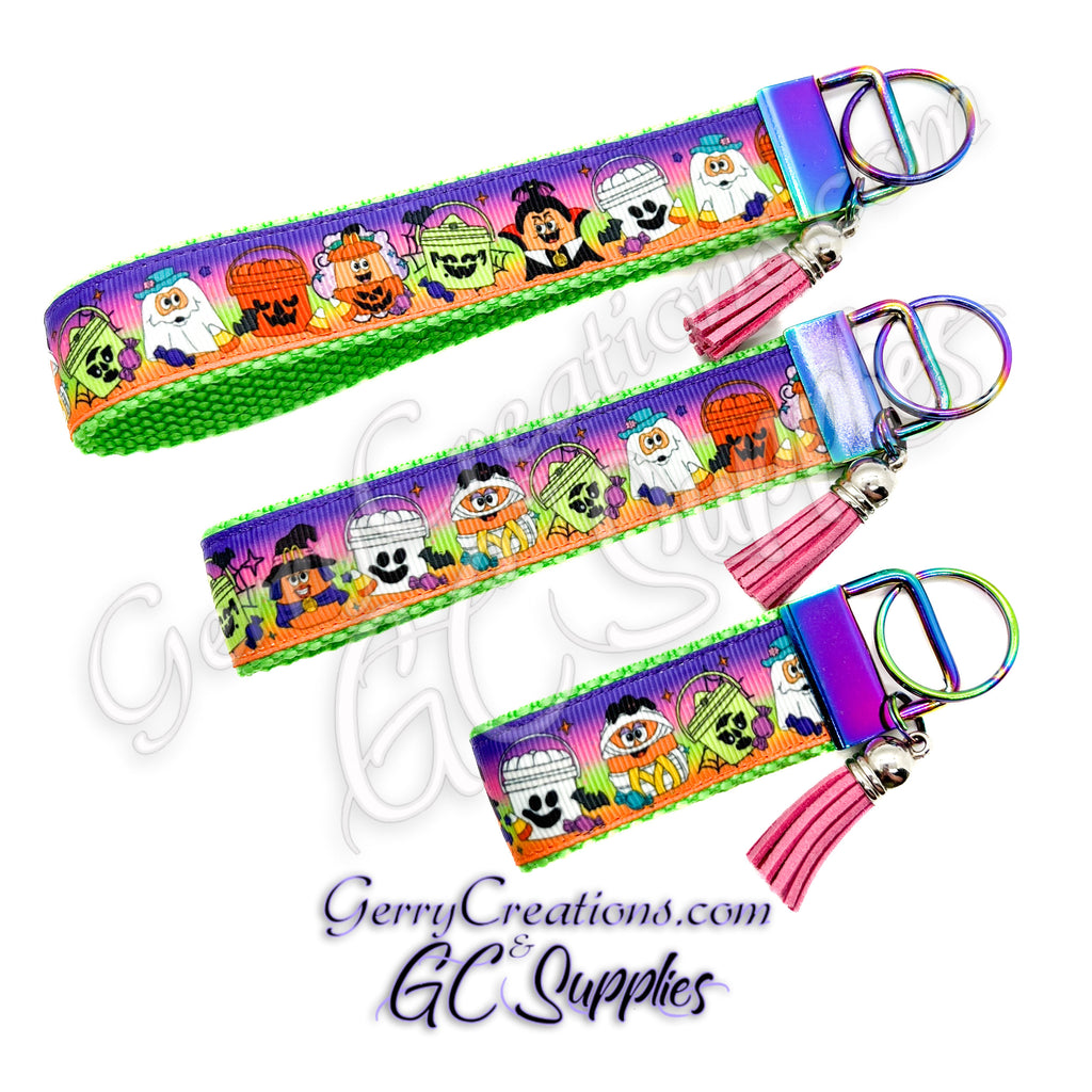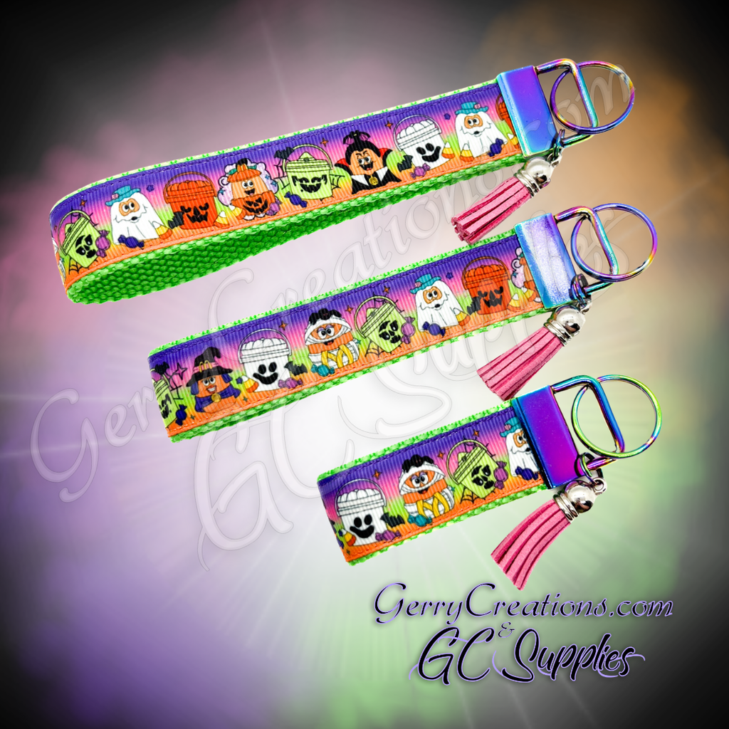 All made with high grade ribbon stitched to polypropylene webbing, with metal hardware with split ring to attach your keys.